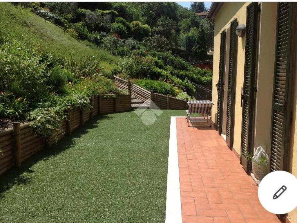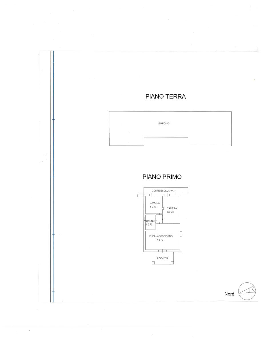 Soggiorno cottura con loggiato , bagno, due camere con porta finestra con uscita diretta sul giardino di proprietà.
